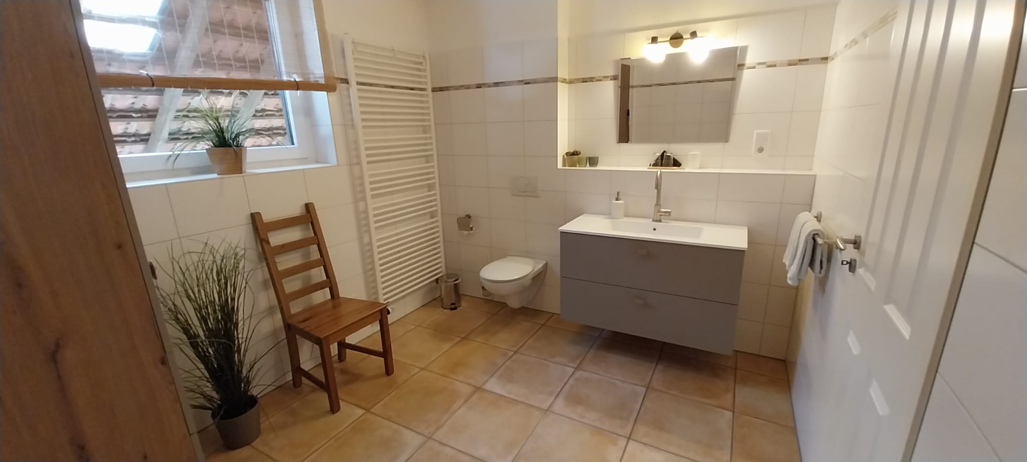 Das 50qm große Apartment verfügt über ein separates Schlafzimmer mit einem Doppelbett (2 x 90 x 200 cm), die Betten können auch einzeln gestellt werden, Wohnbereich mit einer offenen Landhausküche, sowie Bad mit Wanne, Duschkabine, Fön und WC. Zudem bietet unser Balkon einen schönen Ausblick auf unseren Garten, die angrenzende Pferdewiese und den Wald.